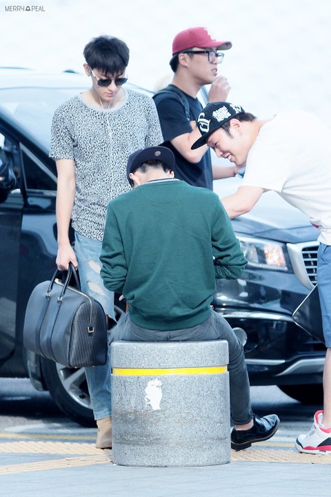 용민매니져가 세훈이 옷에 뭐 묻었다고 웃으면서 놀림
