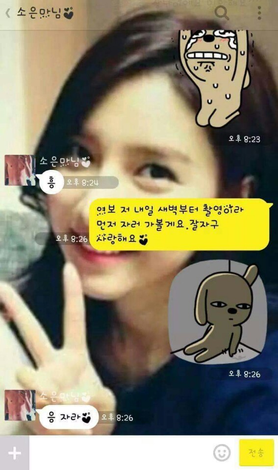이건 인터넷 상에서 화제가 되고 있는 김소은과 송재림의 카톡이라는데용