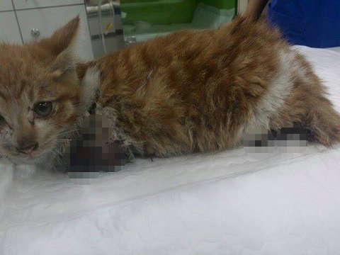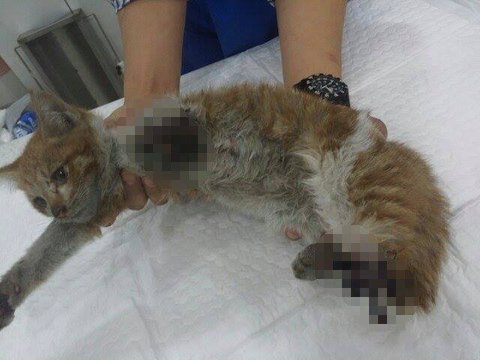 왼쪽 앞 다리, 뒷 다리 모두 잘려나간 상태구요, 동물병원에 데려가보니 오른쪽 앞발도 신경이 없는 상태라고 해요.