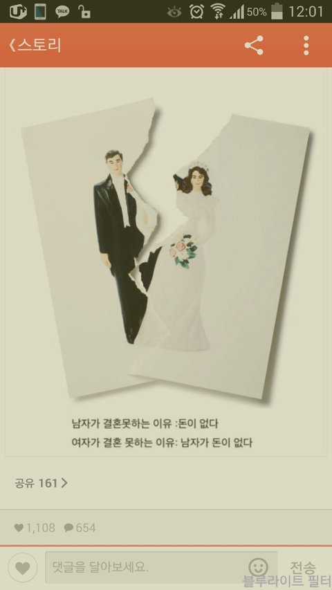 그럼 반반 씩 의견 내서 50 대 50이니까 동전 던지기라도 해서 애 낳을지 정할까? 니가 돈 벌어오면 니 돈이야? 그럼 내가 애 낳으면 내 애..