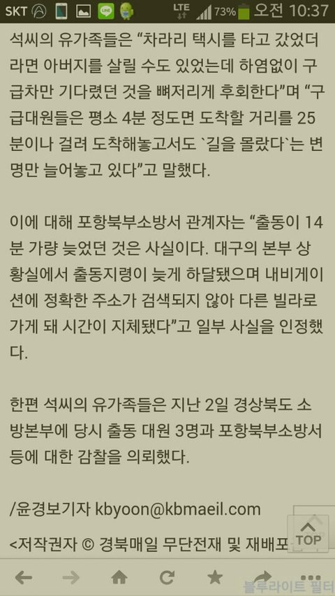 1월1일 새해첫날 소방대원의 늦장출동으로 긴급조치조차받지못하고 세상을떠나신 이모부의 억울함을 조금이라도 풀어드리고자 이글을올려 봅니다.