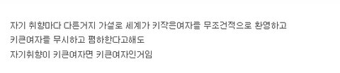 몸매좋고 키큰여자들을 좋아한다는 소리안했음; 키작은여자 유리한쪽으로 이끌지말라고 하지마라 라고하지마셈
