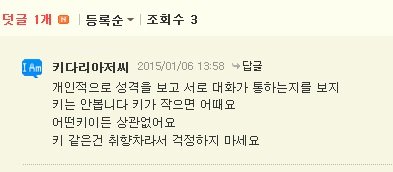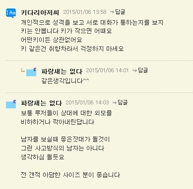 몇중에 진짜로 남자가 쓴것같은 덧글이있었음 솔직히말하자면 키작은여자가 어떻다니 남자심리모른다니 이러면서 싸가지없게 말하는거보면 좀 남자코스프레 하는 년으로보임;;