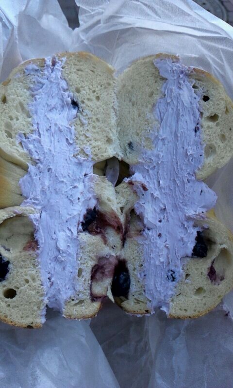 베이글에 크림치즈발라달랬는데 이만큼발라줌