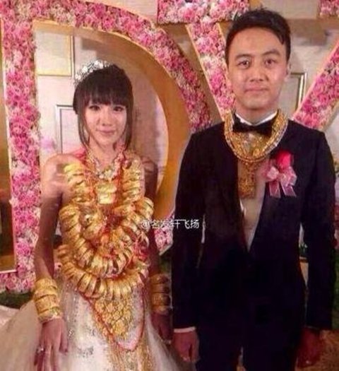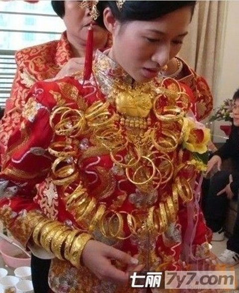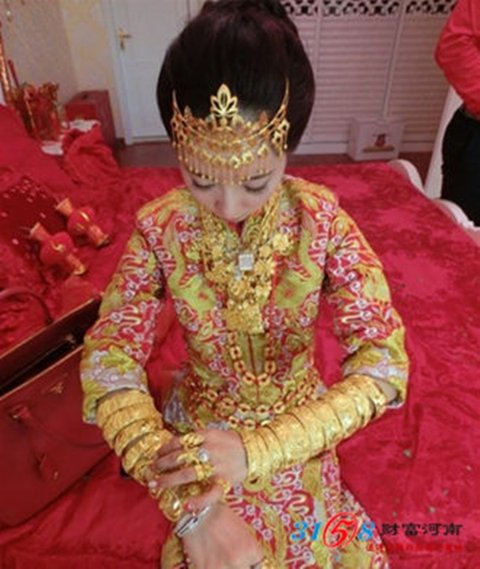 심천시 부유한 가정에서 태어난 것으로 전해진 신부는 “용과 봉황 모양의 팔찌와 돼지 모양의 금패는 부모님이 선물로 주신 것”이라면서 “우리 고향에는 결혼식 때 이런 선물을 받는 풍습이 있다”고 말했다.