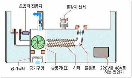 이들은 모두 물을 작은 입자나 수증기로 만들어 공기 중으로 뿜어내는 원리로 되어 있다.