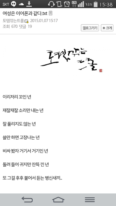 여자는 이어폰과 같다(주갤펌)