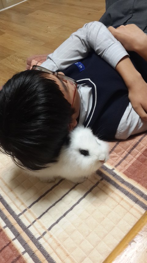 ( 절대로 토끼에게 무리가 가지 않도록 동생이 목에 힘을 퐉!!줬습니당ㅋㅋㅋㅋ)