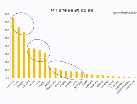 14년도 걸그룹 1위 투애니원 2위 에이핑크 3위 소녀시대