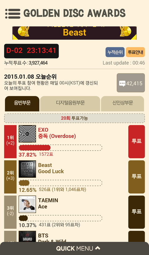 지금 골디랑 서가대 둘다 1위야ㅋㅋㅋ 그치만 언제바뀔지 모르니까 계속 하자ㄱㄱ