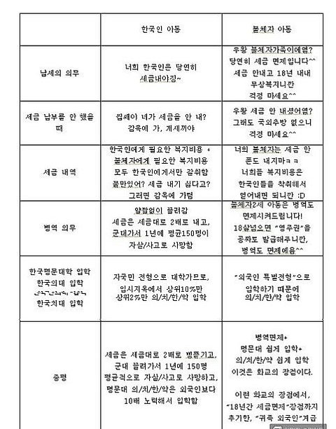 이번에 이자스민 국회의원이 법안을 냈는데 불법체류자의 아동을 보호하자는 법임 병역 면제등 엄청 많음 자세한건 이미지에