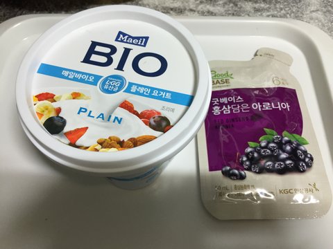 먼저 플레인요거트와 아로니아를 준비해주세요진짜 아로니아와 수삼을 매일 갈기도 힘들고구하기도 힘들기에., 정O장에서 아로니아 즙을 구했어요^^홍삼과 아로니아를 합쳐진 제품이라 적합할거 같고,정O장 제품이라 믿고 구매했습니다 ㅎㅎ