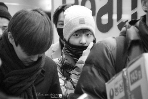 150102 시우민영국입국 새사진(닭손건재 ㅋㅋ)