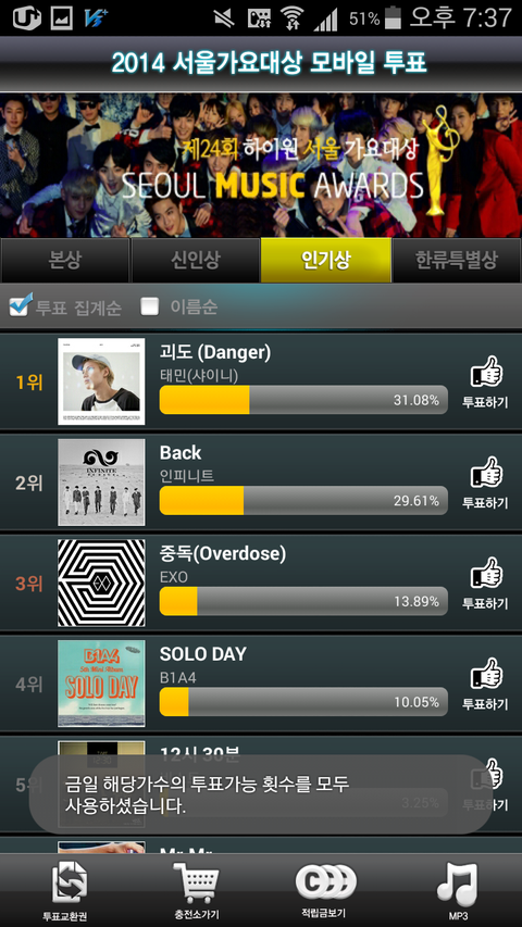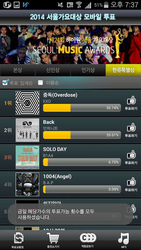 미안한데 서가대 한류특별상에 몰빵이야?