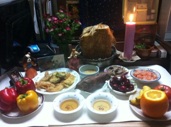 먹으면서도 항상 엄마가 계신곳을 보고 있었어요.