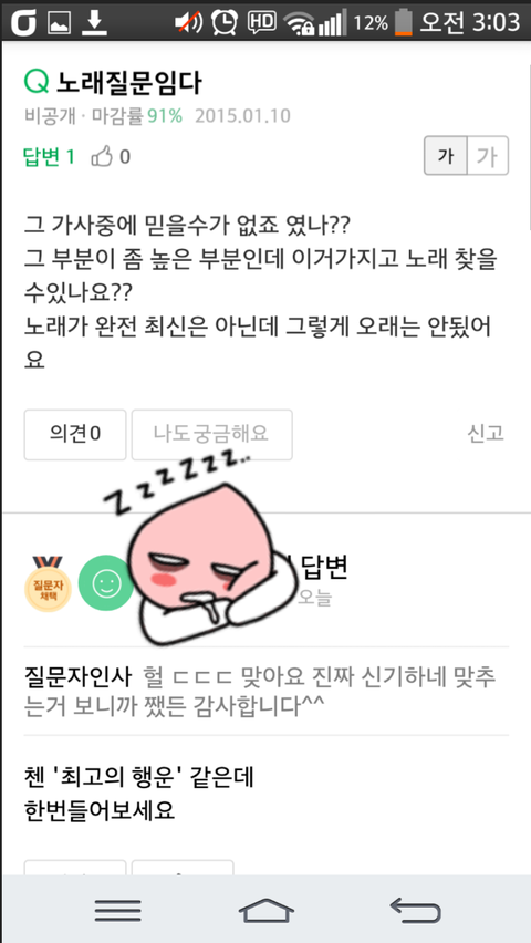 ㅅㄷ나 지식인에 첸노래찾아줬어ㅋㅋㅋ