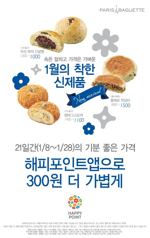 1월 8일 부터 출시되어 해피포인트 어플을 제시하면 바로~300원
