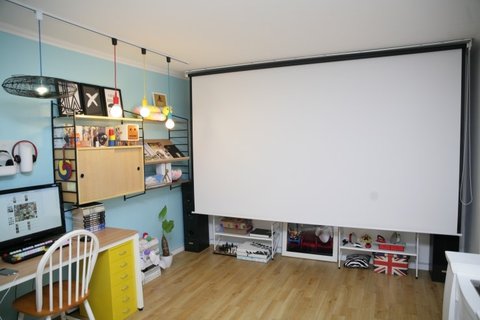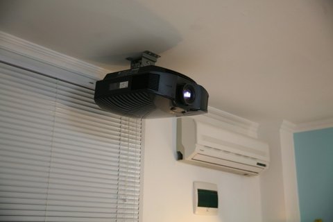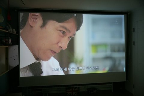 직접 설치한 빔프로젝터 나름 우산브라켓써서 결고하게 작업하고 선도 몰딩으로 깔끔히 마감~~