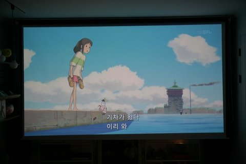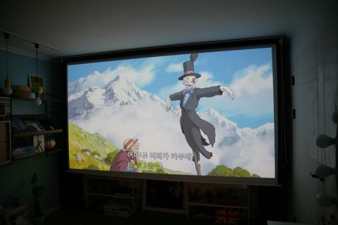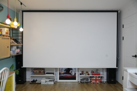 스크린은 현재 150인치로 세팅했어요!! 스크린은 윤씨네제품150인치