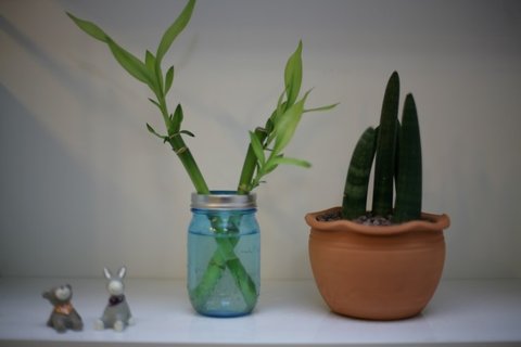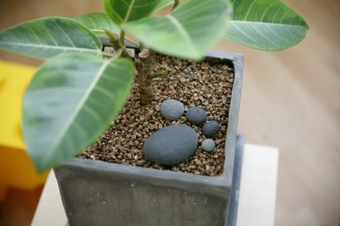 작은 뱅갈고무나무 그리고 알로카시아 식물