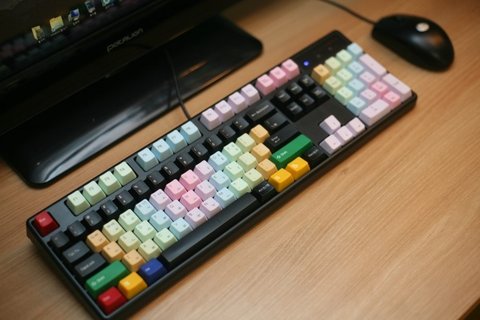 손맛좋은 기계식키보드에 레인보우 파스텔 키캡 조합으로~~
