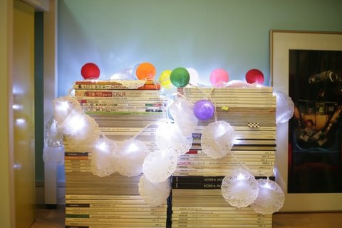 볼조명에 다이소에서 산 도일리페이퍼로 장식~~