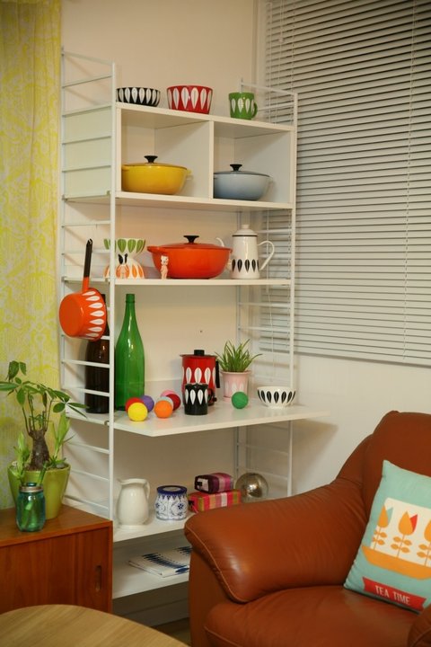 거실 여기도 레일조명 달았어요!! 파란콘솔 리폼 , 유리병 조명과 접시도 달구요~