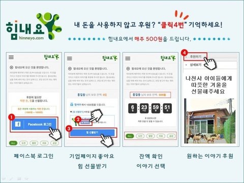 SNS 응원사이트인 [힘내요]는 후원업체와 연계하여 모금을 진행하고 있으며