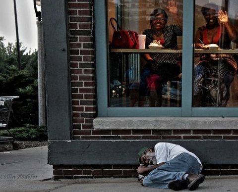 밖에서 자고 있는 노숙자의 모습이 비교되는군요