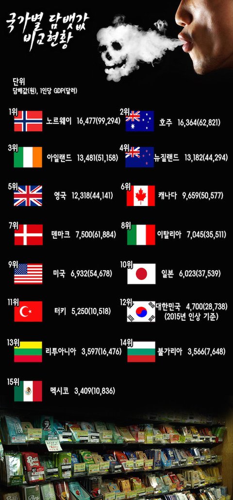 세계 각 나라별 담뱃값 비교