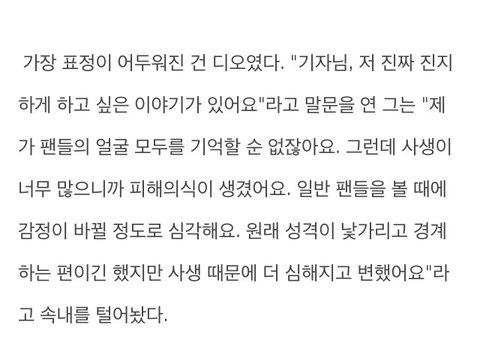 이거보고 진짜충격먹었었는데 ㅋㅋ 팬들이 사생으로 보인다는애가 팬들을 조금이라도 생각할리가.. 좀 씁쓸함
