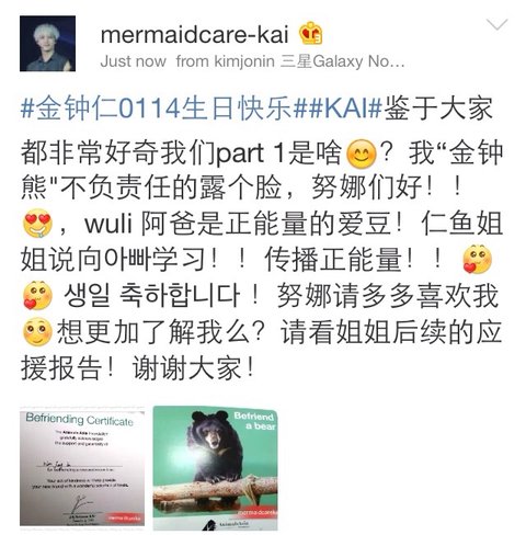 종인이처럼 다정한 종인이팬들의 뜻깊은 서포트로 멸종위기의 반달곰과 북극곰을 입양한 우리 곰돌아빠 종인이가 기뻐하는 소리가 들린다들려ㅎㅎ