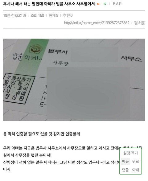 아버지 법무사 사무장하신다는 팬이 쓴글 봤지?