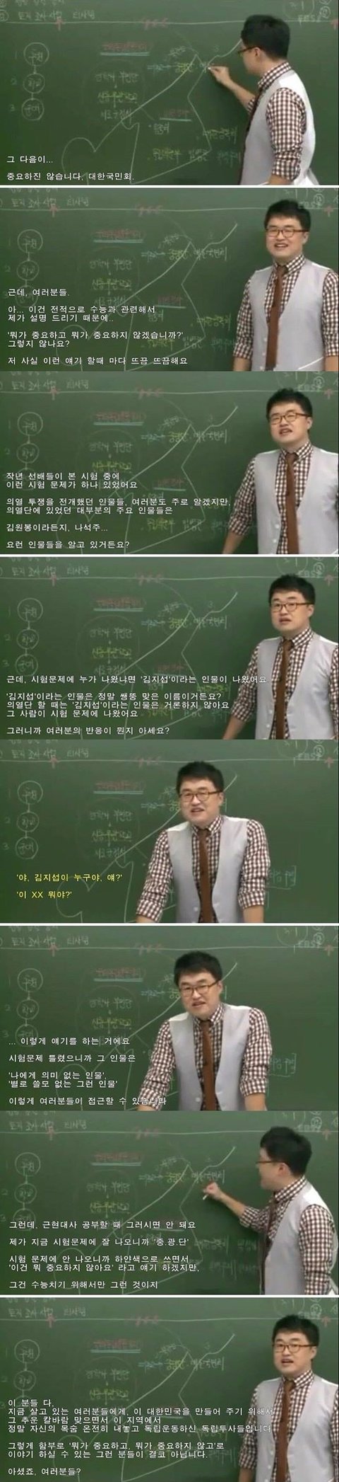 저도 큰별쌤 인강들으면서 공부했었는데요 큰별쌤이 잘가르쳐주시지만 참 좋은말씀을 많이해주세요ㅎㅎ 저렇게 역사를 배울때의 기본 마음가짐뿐만 아니라 응원의 말씀등등 혹시라도 한국사 강의 필요하시면 큰별쌤인강 추천드려요! 몇달전까지만해도 큰별쌤인강 들으면서 열심히 공부했는데 지금도 몇몇말씀들은 기억에 생생해요