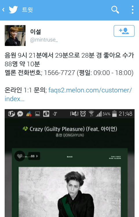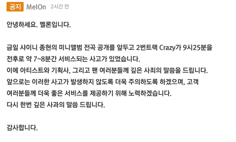오늘 자정 (11일~12일 넘어가는 12시)에 종현의 솔로앨범의 음원이 공개되었고,그에대한 특정 음원회사에 대한 글입니다.