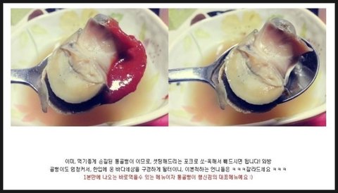 손질이 되있는 구슬골뱅이가 이상한게 아니고 -> 구슬골뱅이를 먹는 방법입니다.