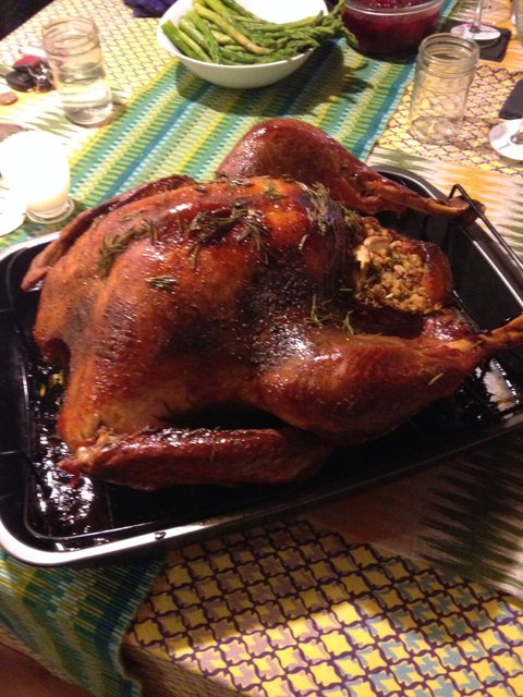 작년 Thanksgiving 때 만든 칠면조 구이입니다. 매년 Thanksgiving 때마다 칠면조를 직접 구워요. 개인적으로는 살이 퍽퍽할 수 있어서 칠면조를 별로 좋아하지 않았는데, 다양한 허브와 스파이스들로 냄새도 나지 않고, 살도 아주 부드러워서 제가 유일하게 좋아하는 것이 신랑의 칠면조 구이이에요. 직접 만든 스터핑과 크랜베리 소스와 함께 먹으면~ 별미이지요