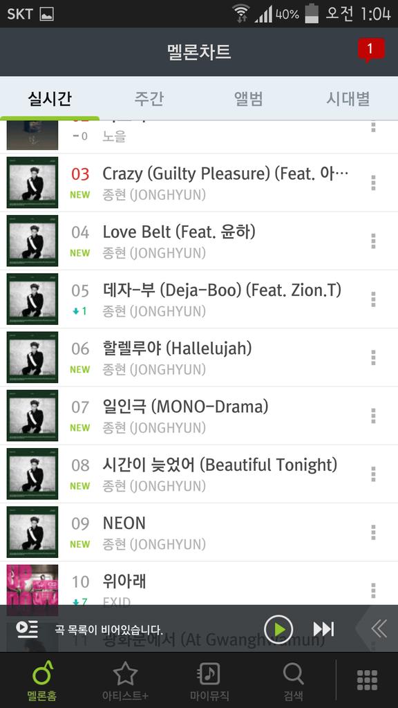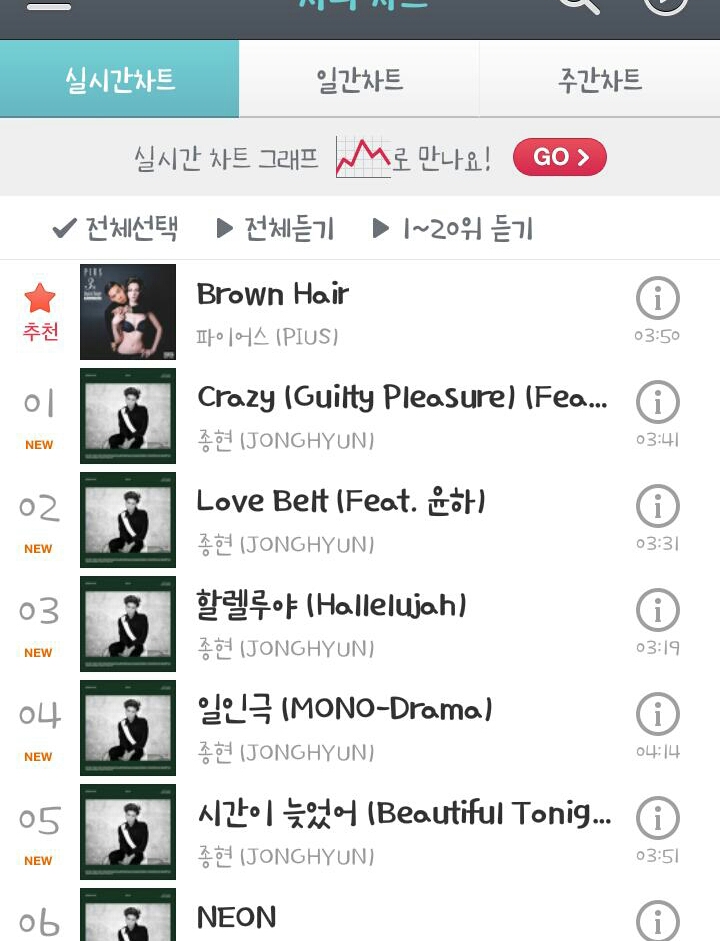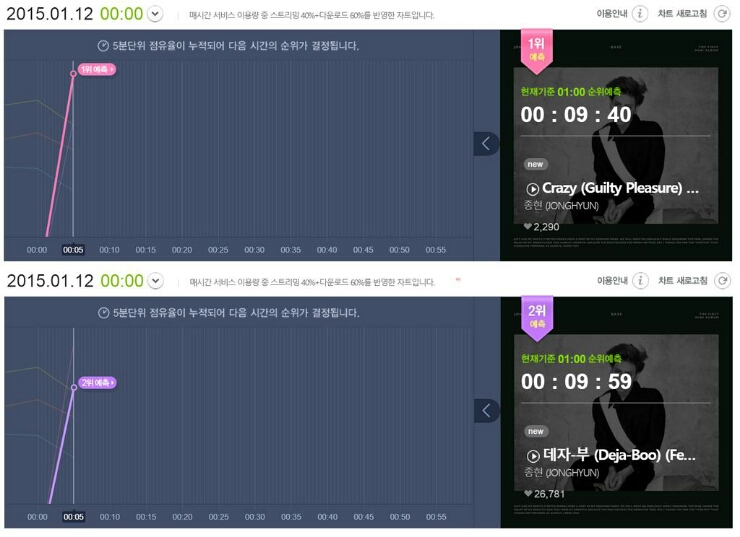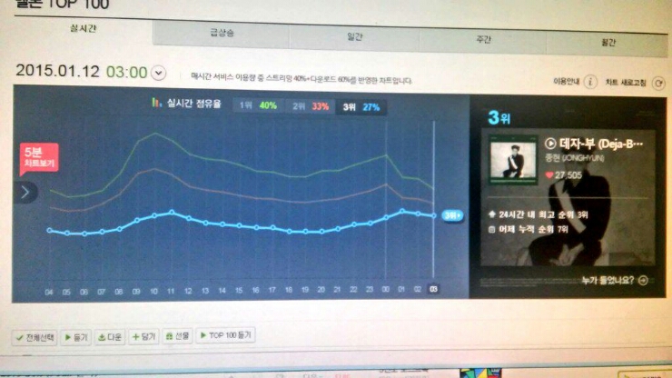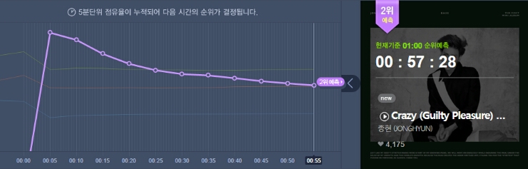 해당시간대 차트 순위입니다.