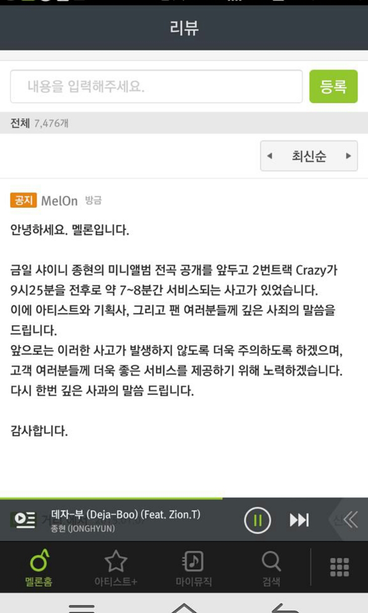 팬들을 실소케 하는 것은 심지어 이 공지가 공지사항란이나 팝업 안내가 아닌 앨범리뷰란에 있었다는 사실입니다.