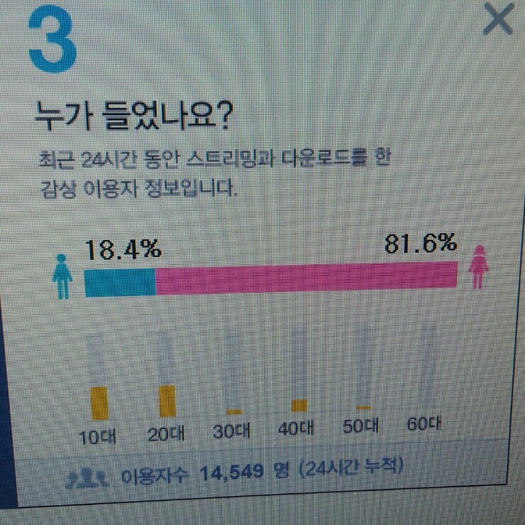 타 음원차트와 굉장히 비교된다는 것을 알 수 있습니다.
