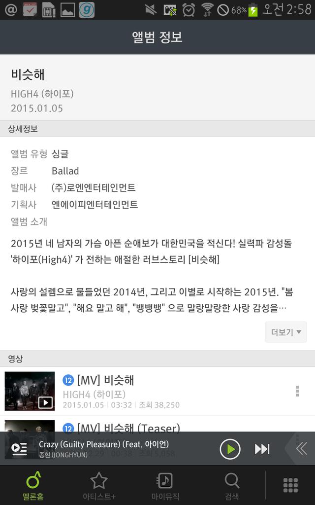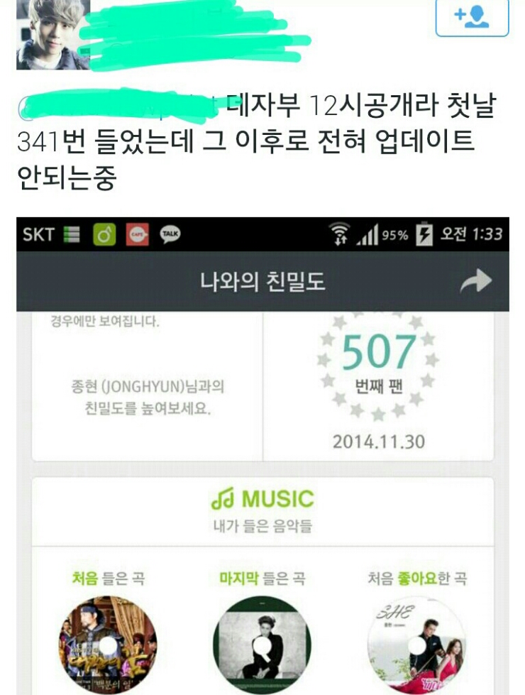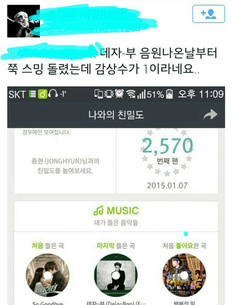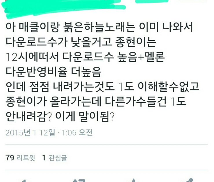 보시는 바와 같이 음원 출시일이 터무니없이 빠른 곡들도 추천곡에 선정되었음을 알 수 있습니다. 이들이 모두 공통적으로 ㄹㅇ을 배급처로 사용중이기에, 당연히 의심할 수밖에 없는것입니다. (종현의 배급처는 KT뮤직입니다)