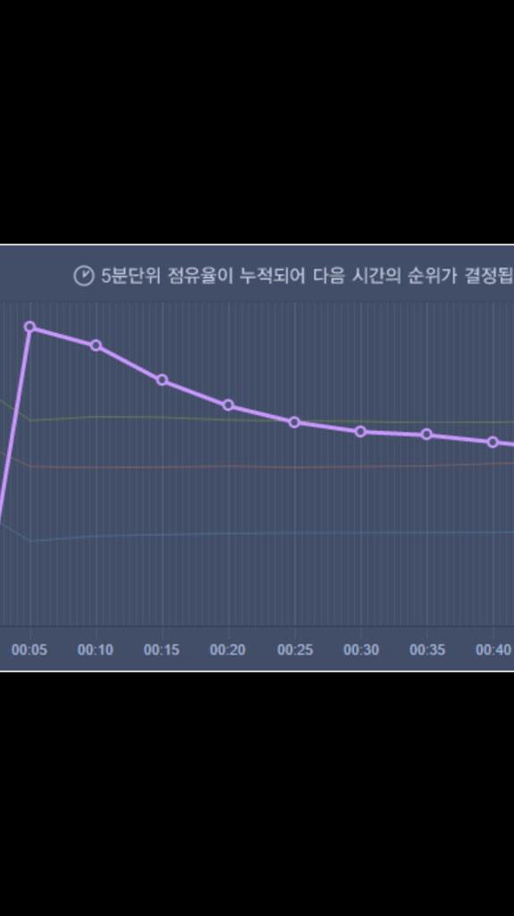 보시다시피, 보라색인 종현의 점유율은 하락하고 있음에도 다른 모든 음원들은 그대로 직선을 유지하고있음을 볼 수 있습니다.