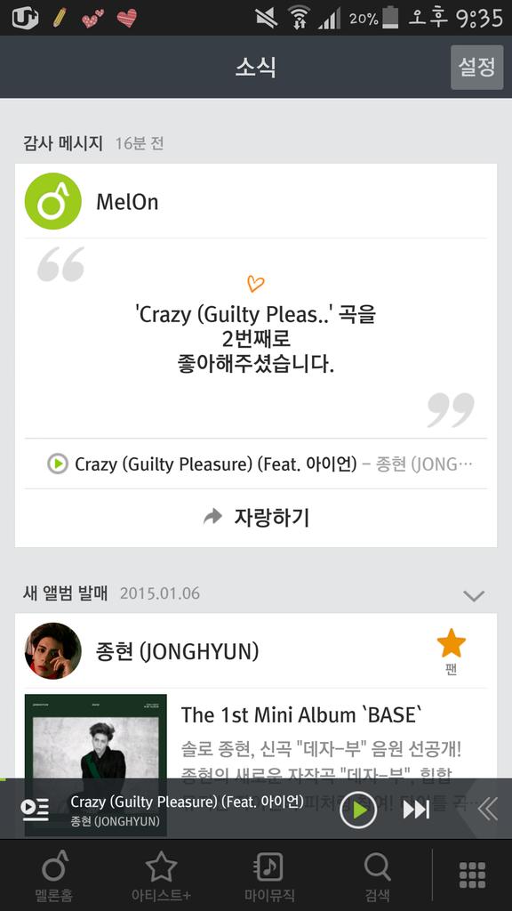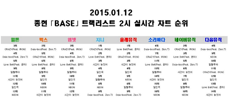 1. 샤이니 종현의 첫 솔로앨범 BASE 중 타이틀 곡 crazy 음원 유출