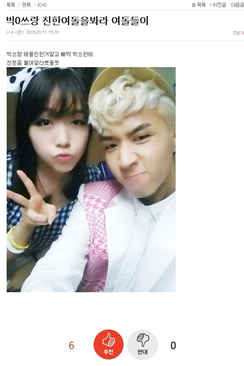 니네 오빠가 다른아이돌들이랑 친하게 지내면 사교성쩔고 착한거고