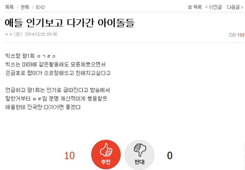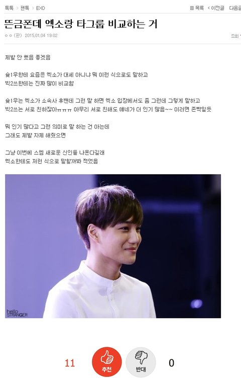 근데 우리가 '엑소가 뭔데 시발 우리애 나올때마다 언급이야ㅡㅡ'
