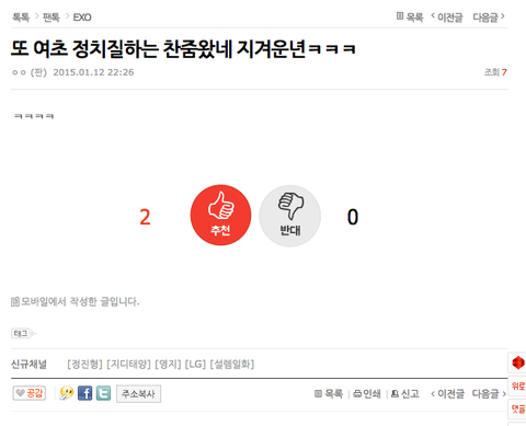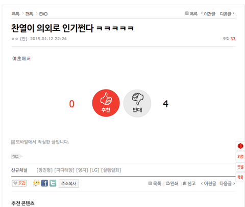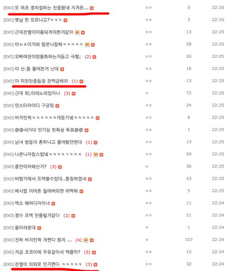 찬열 여초 인기드립치고 곧바로 미친찬줌 찬줌 거리고ㅋㅋ