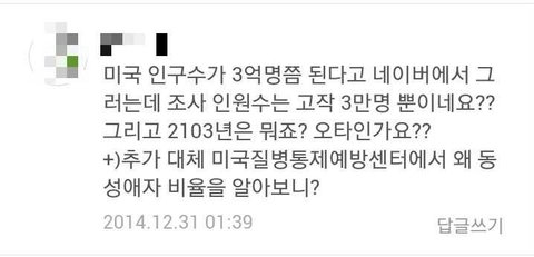 '그런데 왜 3만명뿐만 조사에 응답했지? 미국은 3억 하고도 천만명이 있는데??(네이x 검색)