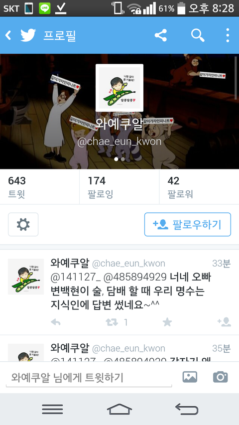 트윗에서도 지랄하는 년들 종종 나온다