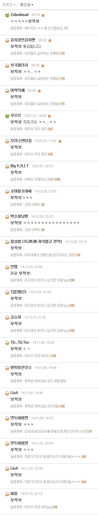 보슬아치니 김치녀니 된장녀니 하는말도 극혐이었는데 이제 보적보란말까지 하네요