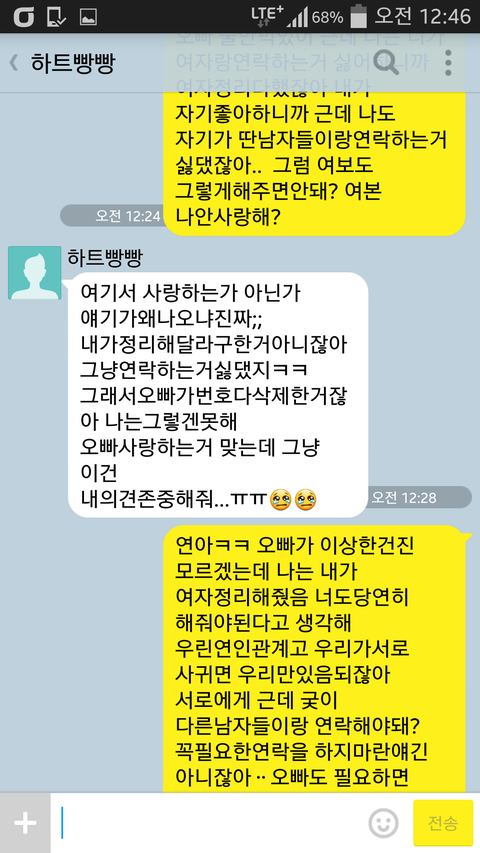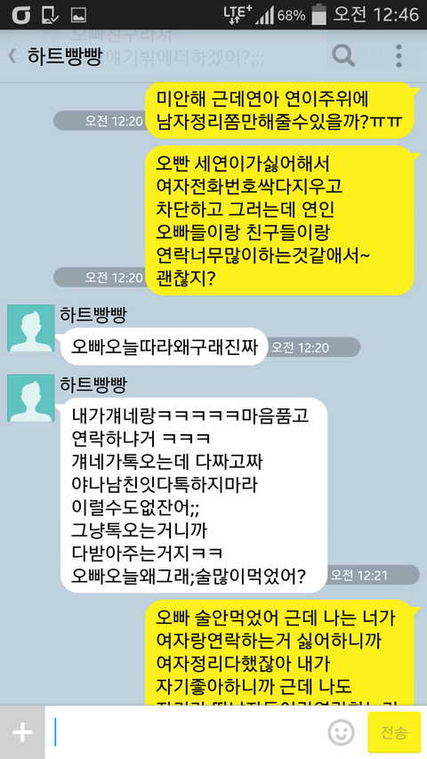 전여잔데여 여친분이이해가안가네요 ㅋㅋ 자기가 연락하는건 되고 남친이 연락하는건 안된다는건 좀 아닌듯 ㅋㅋㅋ
